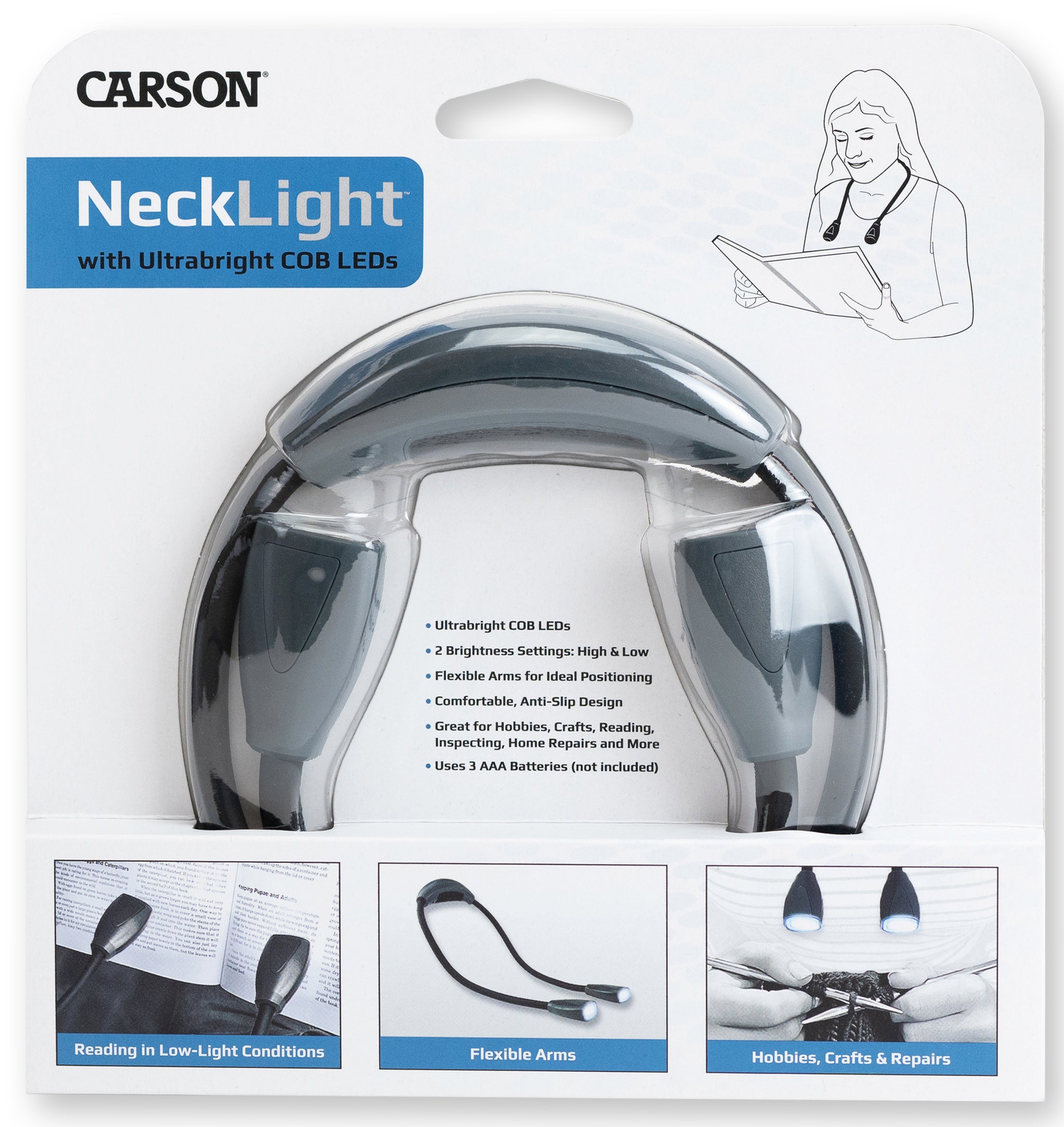 Carson nakkelampe har 2 lysstyrker, som gør det muligt for dig at tilpasse lysstyrken efter behov.