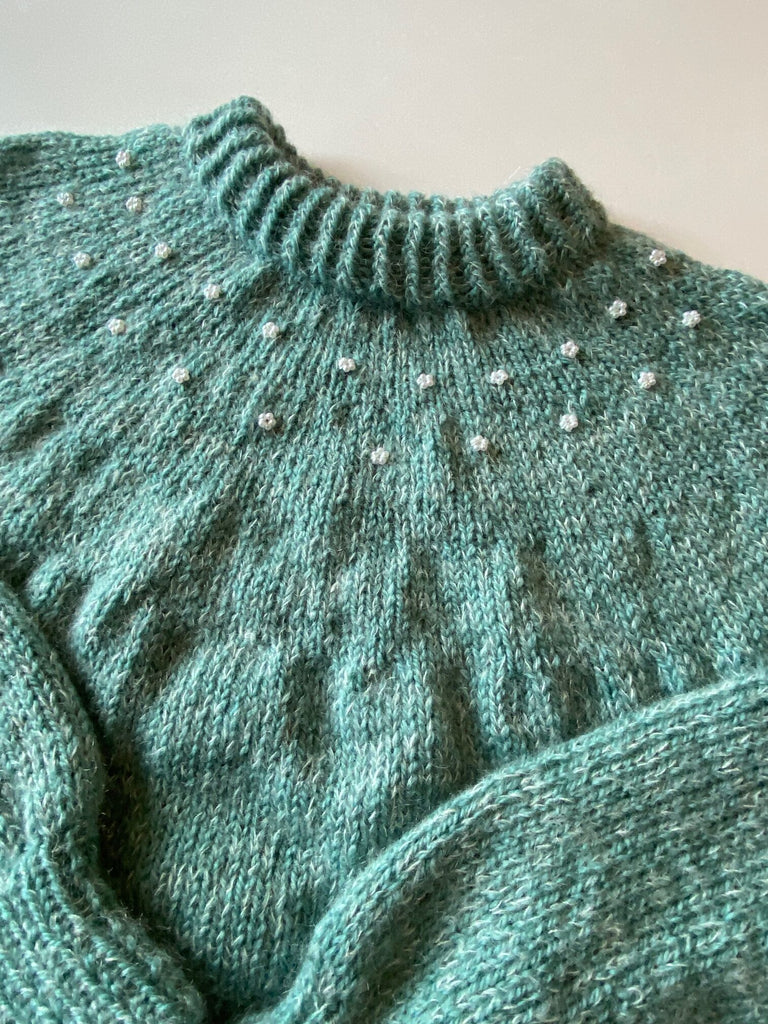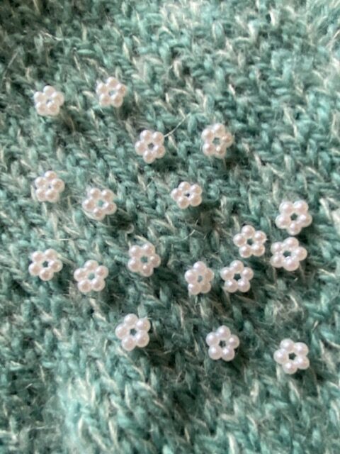 Pynt dit fine strikketøj med små blomsterperler for at give det et mere feminint udtryk.