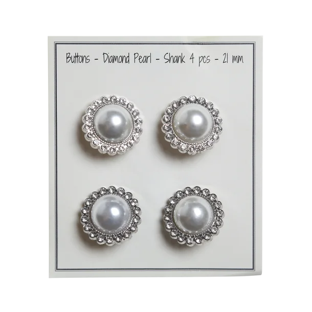 Disse blingknapper med en smuk perle i midten fra Go Handmade har en rækker af imiterede diamanter rundt om en stor glasdiamant, som giver en diameter på 21 mm.