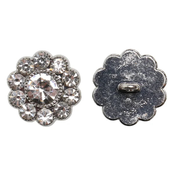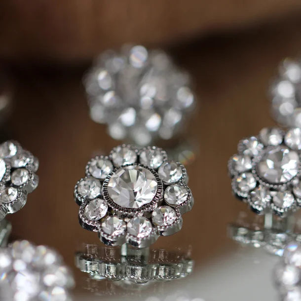 Disse blingknapper fra Go Handmade har en rækker af imiterede diamanter rundt om en stor glasdiamant, som giver en diameter på 20 mm.