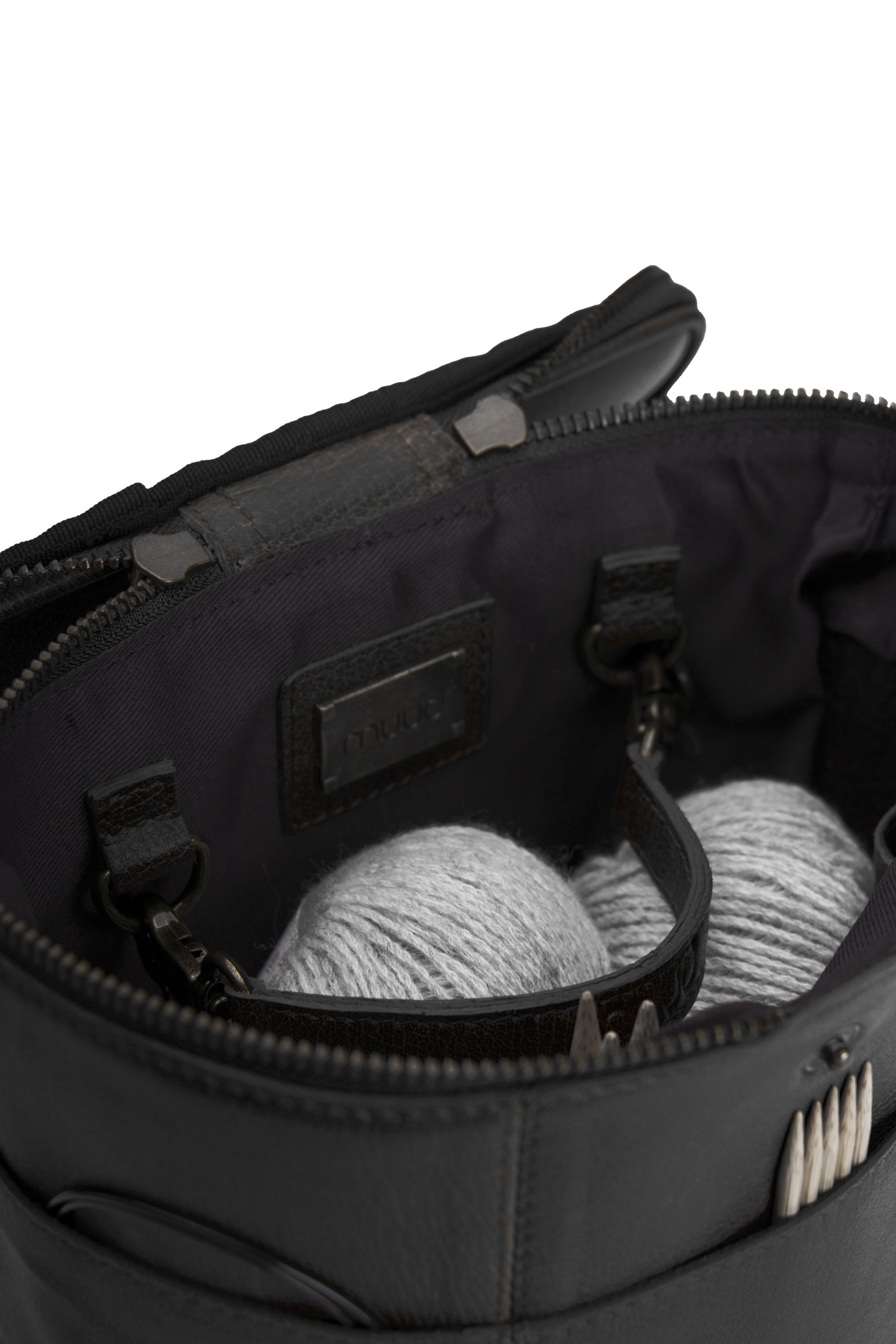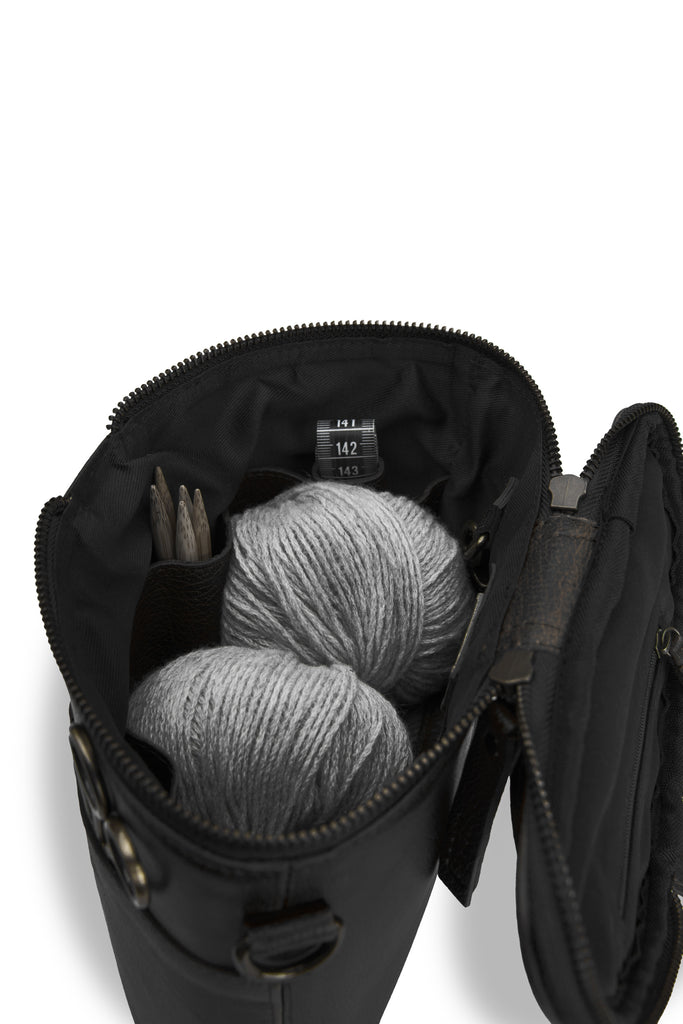 Grace har ét rummeligt hovedrum samt tre åbne lommer – både indvendigt og udvendigt – hvilket giver dig masser af plads til at organisere dine redskaber. Derudover er tasken udstyret med smarte garnåbninger ved lynlåsen, så du kan strikke eller hækle direkte fra tasken uden at dit garn filtrer - så smart!
