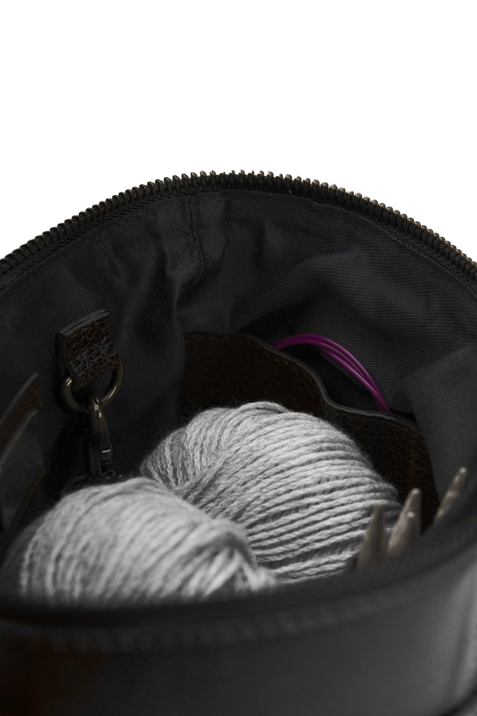 Grace fra Muud er en elegant og funktionel halvmåneormet læderprojekttaske. Tasken er perfekt til opbevaring og transport af dine strikke- og hækleprojekter og kombinerer praktiske detaljer med et stilfuldt udtryk. Den justerbare skulderrem giver fleksibilitet, så du nemt kan bære tasken på den måde, der passer dig bedst.