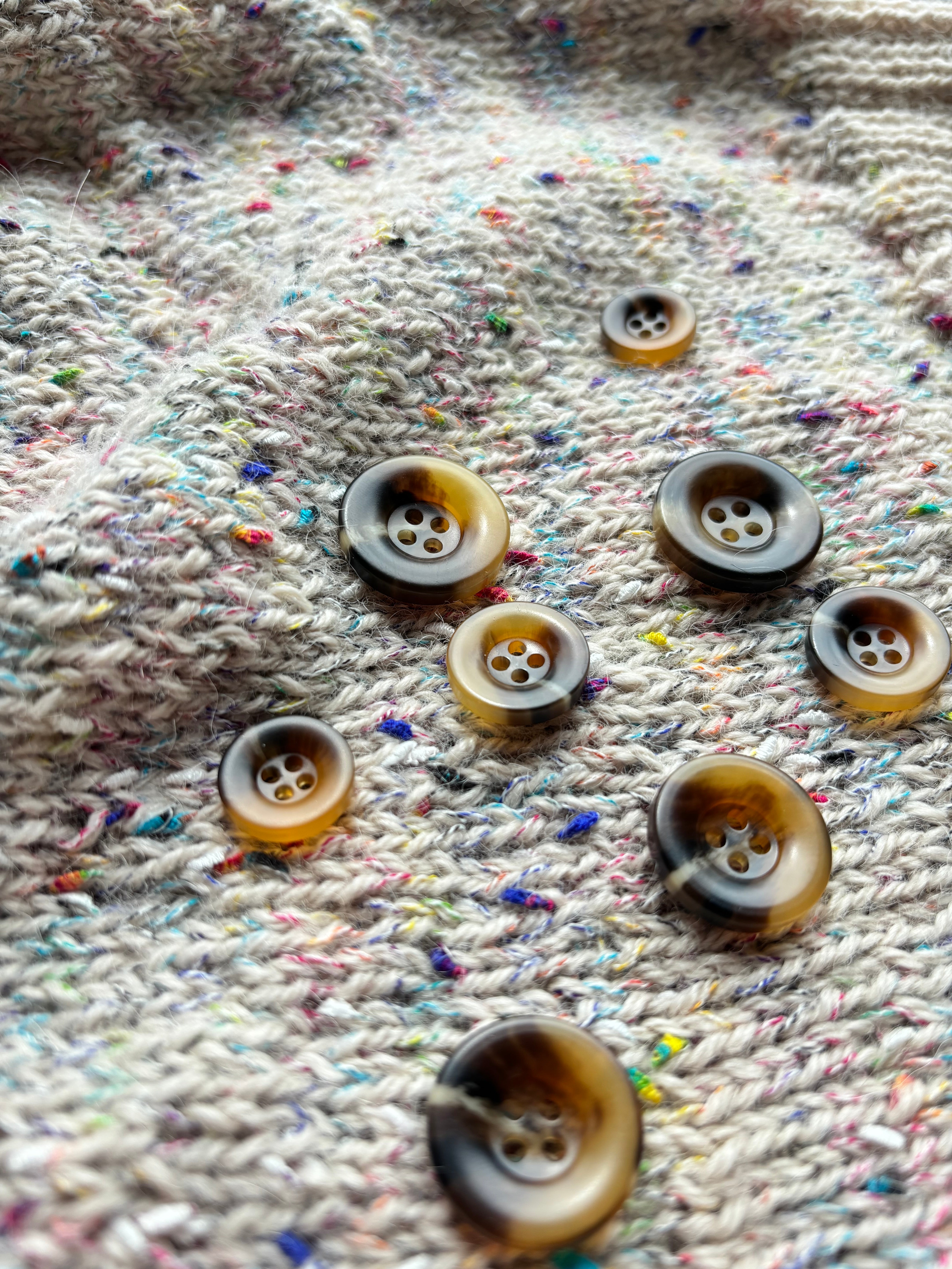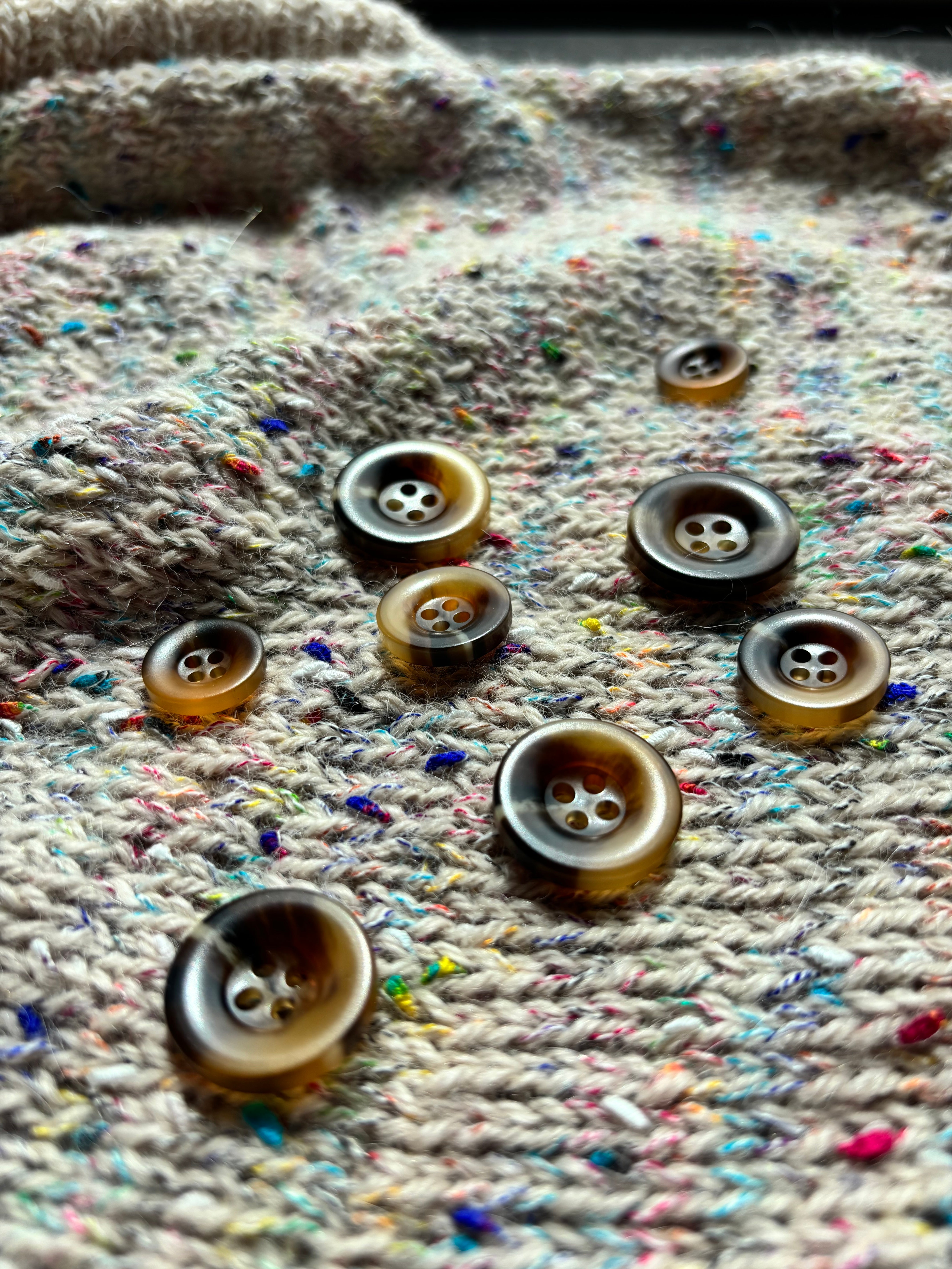 Imiteret, meleret hornknap - 15 mm er på bestilling og sendes så snart den er tilbage på lager
