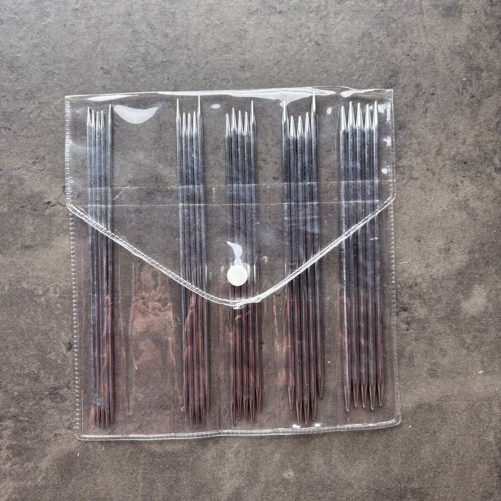 I dette sæt får du 15 cm strømpepinde i størrelserne 2 mm, 2.5 mm, 3mm, 3.5 mm og 4mm, som kan opbevares i en plastikkuvert hvori der er en lomme til hver størrelse.