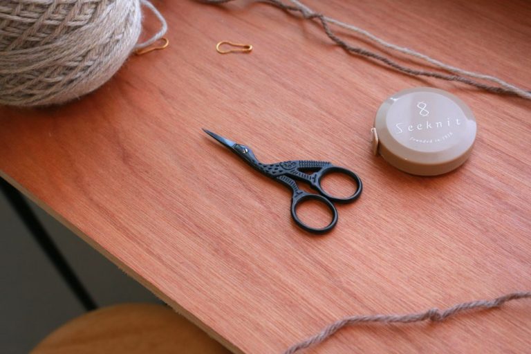 Den fine, lille storkesaks fra Seeknit med indgraveret logo er ideel til at have med i strikketasken.