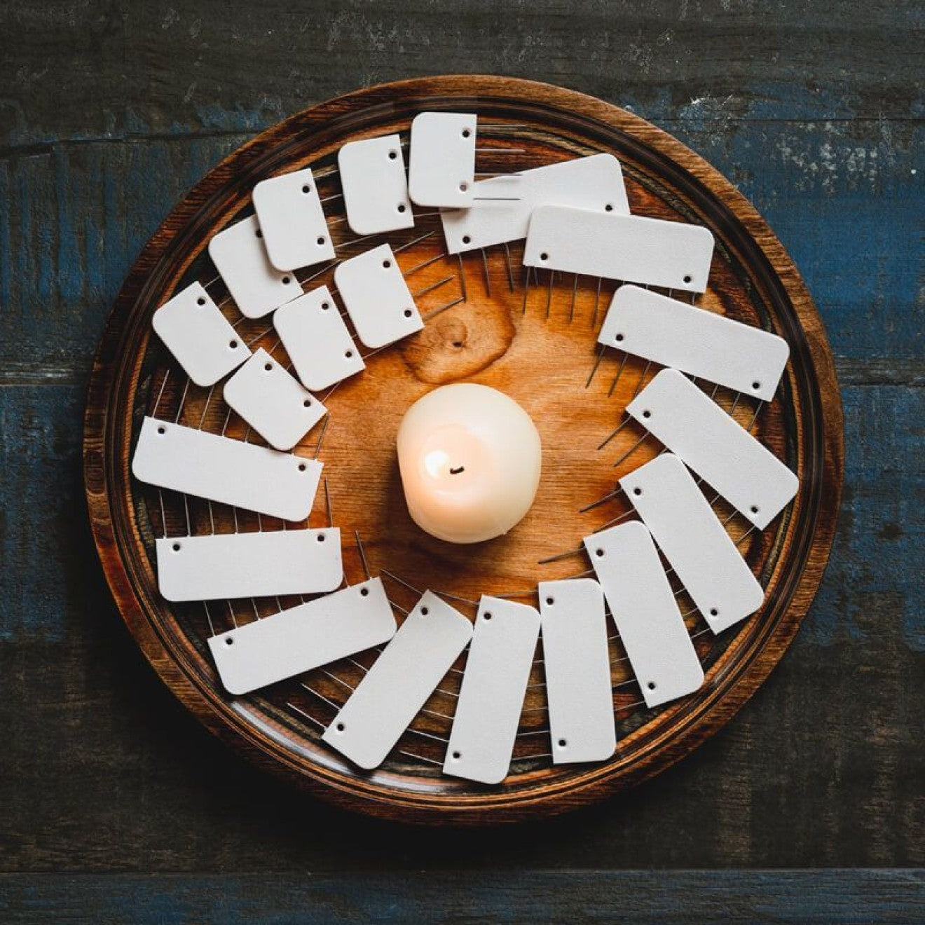 En pakke indeholder 20 strikkeblokkere med hhv. 12 strikkeblokkere med 8 nåle og 8 strikkeblokkere med 4 nåle.