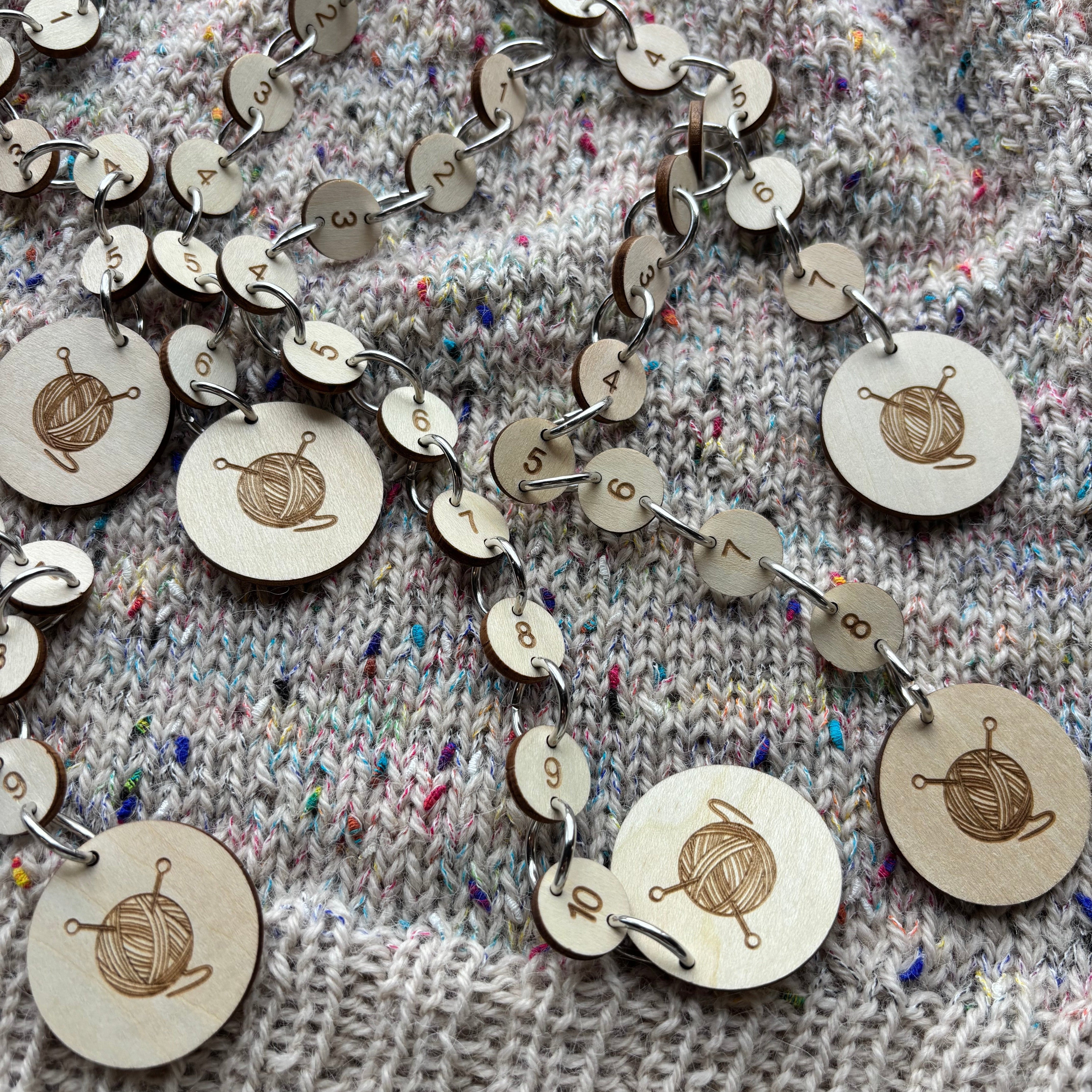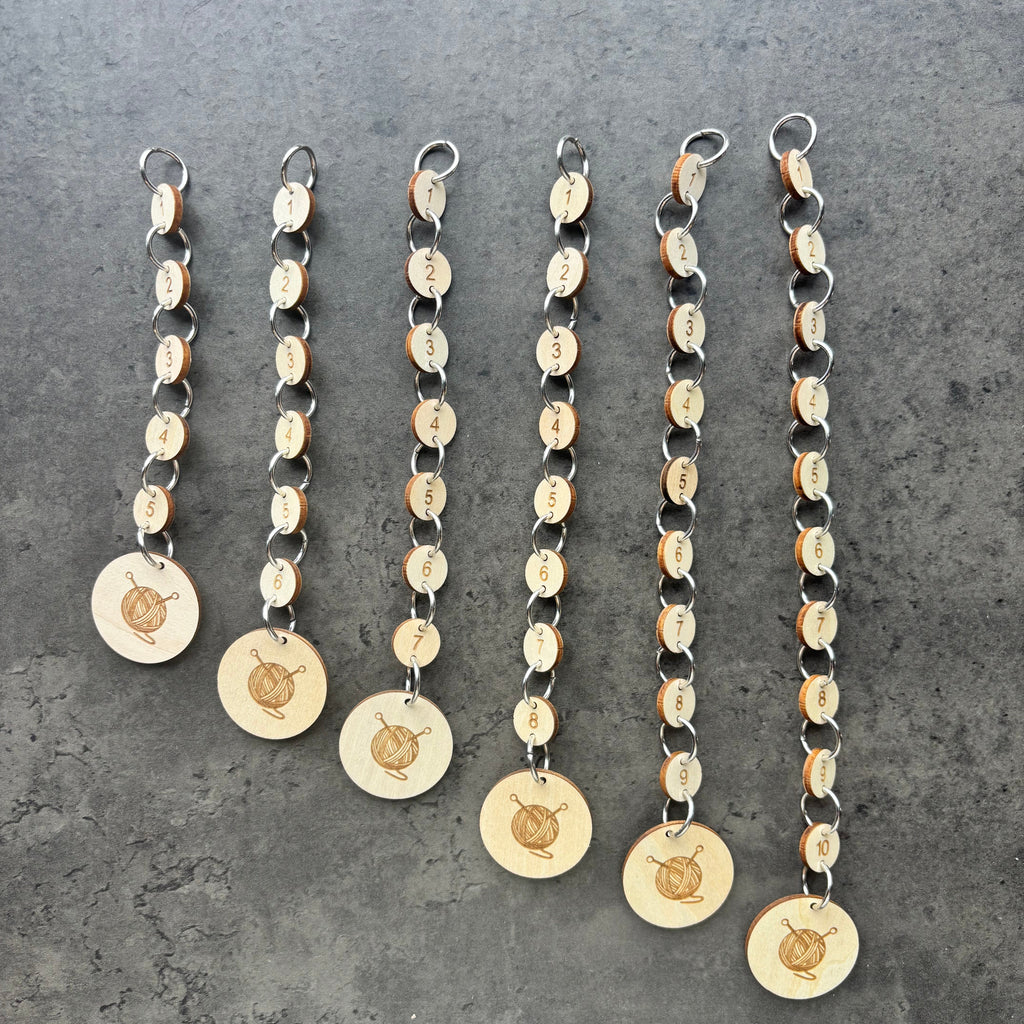 Sæt den øverste ring i strikkefisken der, hvor du skal tælle. Hver gang du passerer, rykker du strikkefisken en ring. På den måde er det let at holde styr på, hvor mange omgange, du har strikket siden sidste ud- eller indtagning.