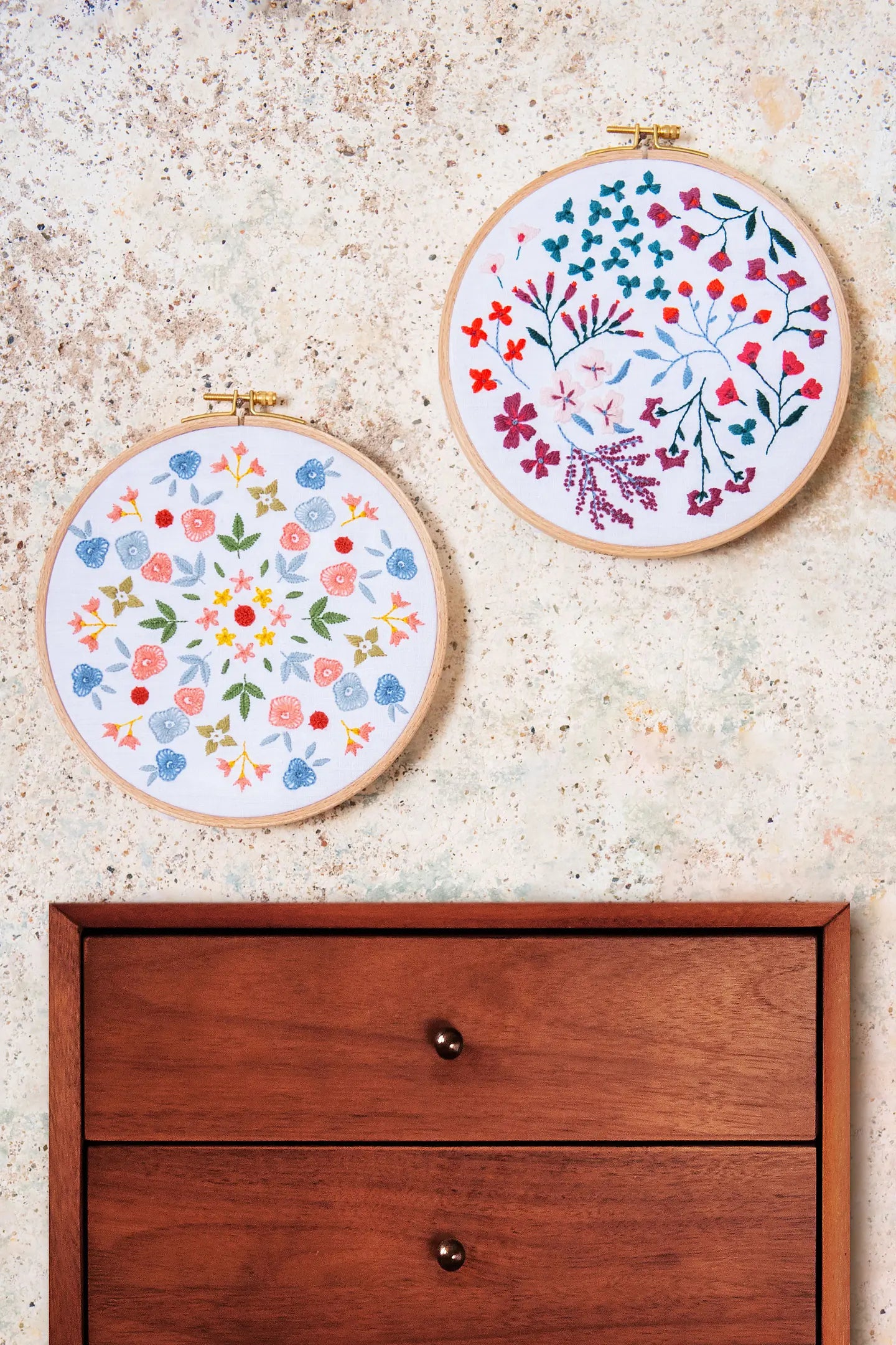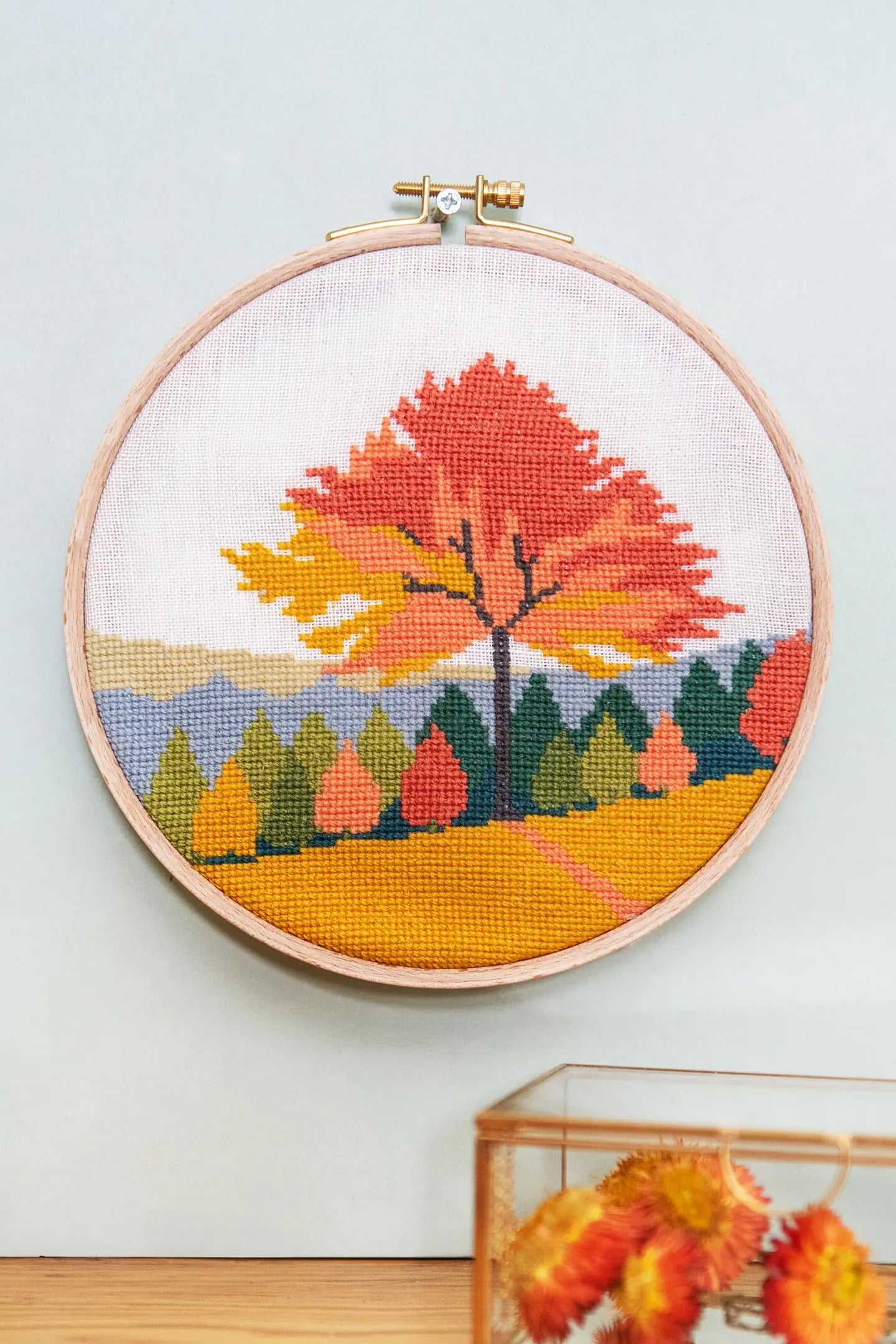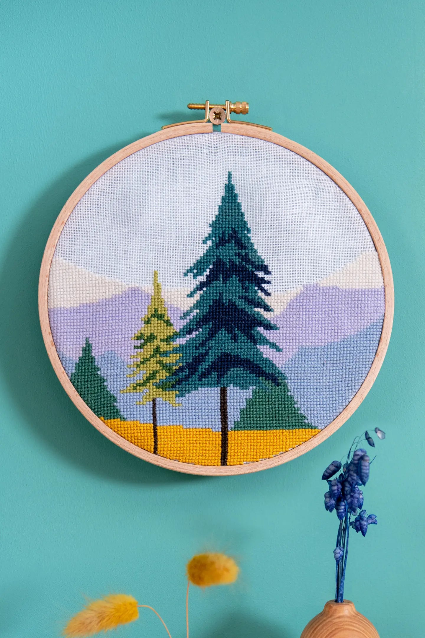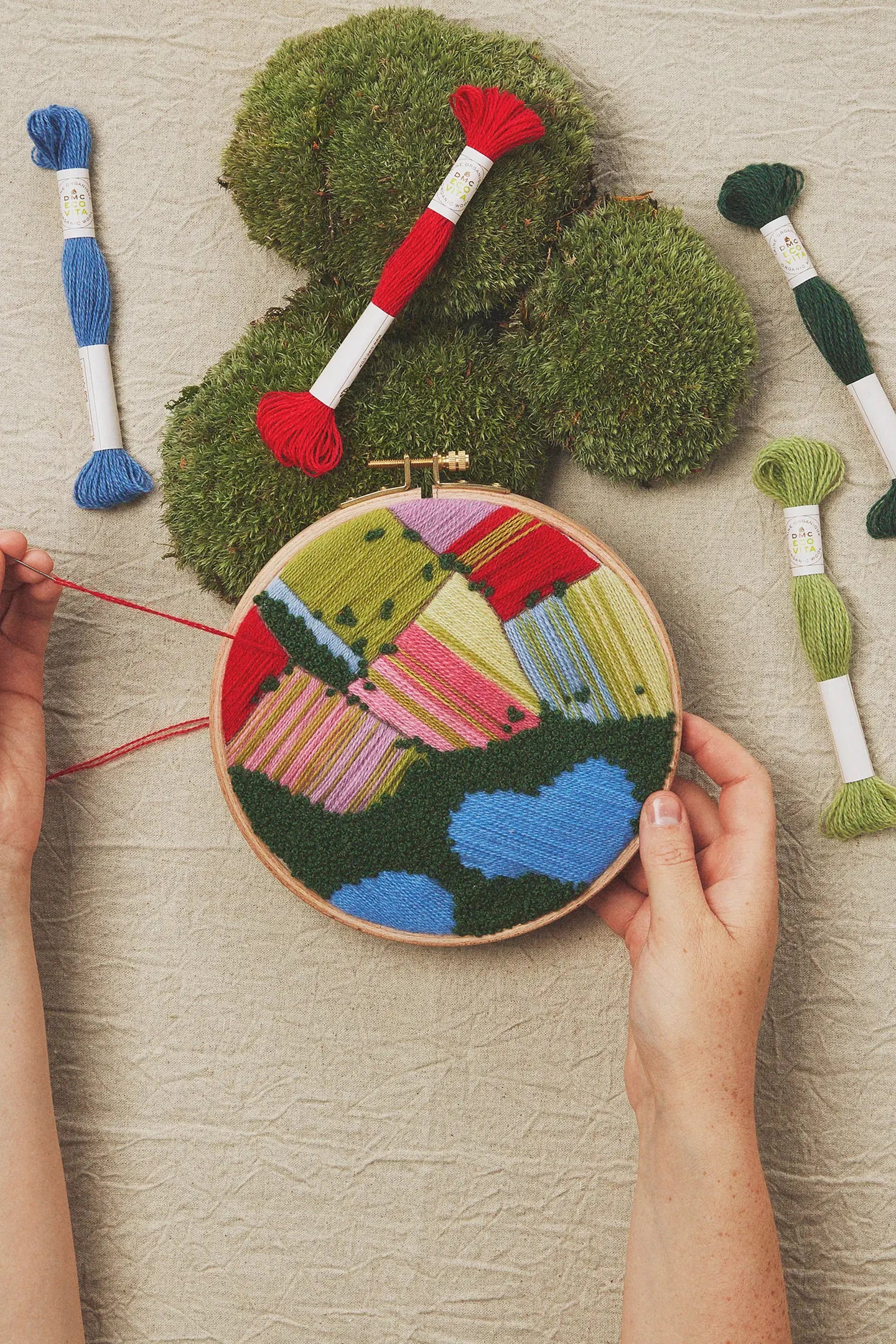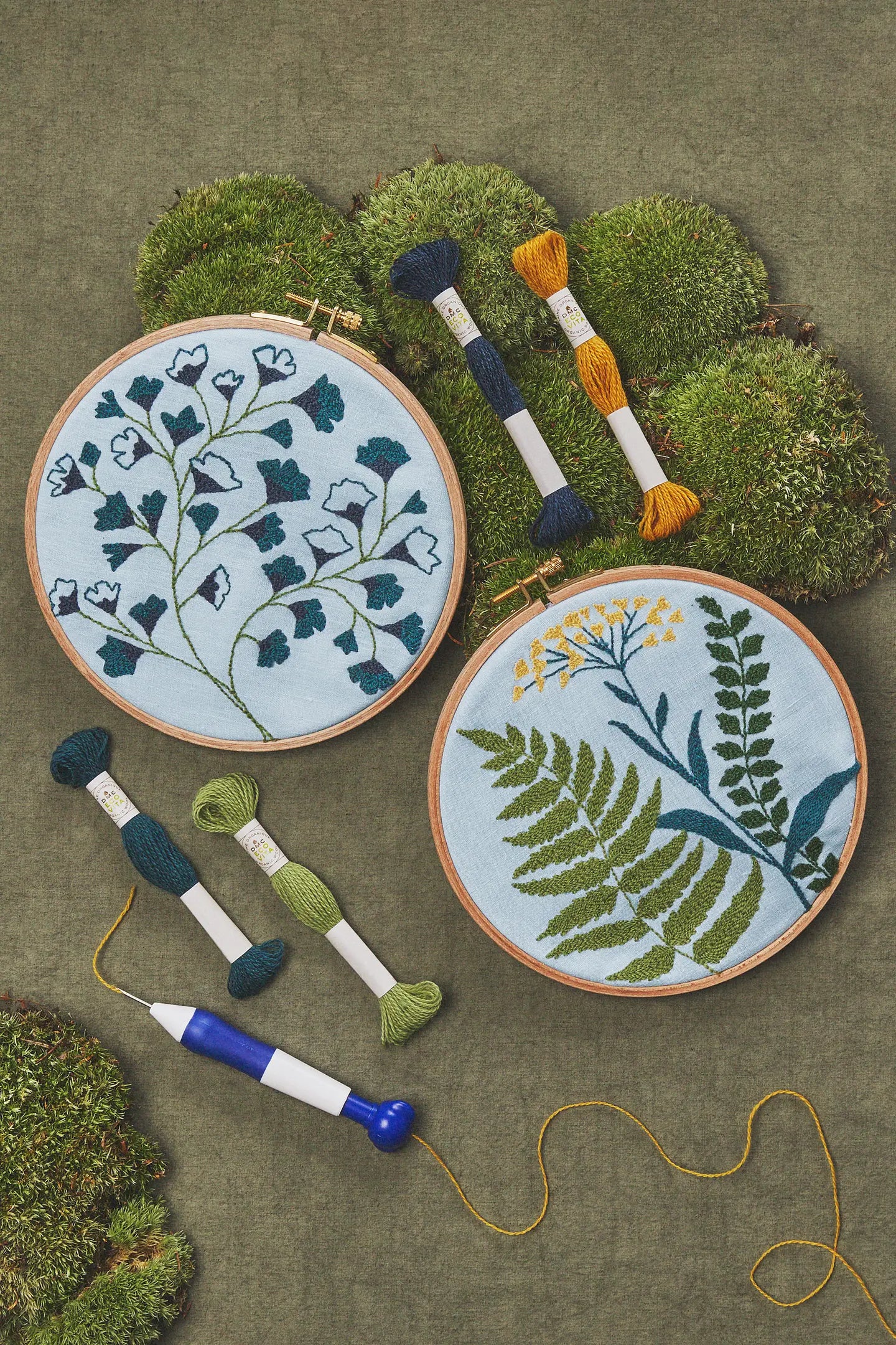 The Forester’s Wall inviterer dig ind i en magisk verden af naturinspireret håndarbejde med 19 fortryllende designs til broderi, krydssting og punch needle, alle skabt med DMC’s økologiske Eco Vita-garn. Mønstrene bringer stemningen af skove og enge til dine hænder og hjem – fra blomstermotiver og træer til luftige landskabsmotiver.
